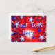 A firework exploding in a shower of dazzling blue and white stars against a red and blue sky. Postcard with a red, blue and white customisable design for you to personalise with your own text, pictures and ideas. The text can easily be changed using the template provided or click the 'Customise It' button to make further alterations. Created using original photographs and digital techniques by Jess Perry.