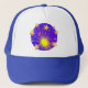 A firework exploding in a shower of dazzling yellow and pink stars against a blue sky. Trucker hat with a yellow, pink, blue and white customizable design for you to personalise with your own text, pictures and ideas. Created using original photographs and digital techniques by Jess Perry.