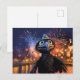 Firework Wonder Raven Watching Night Sky In Styliz Postcard