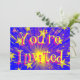 A firework exploding in a shower of dazzling gold and pink stars against a blue sky. Invitation with a yellow, pink, blue and white customisable design for you to personalise with your own text, pictures and ideas. The text can easily be changed using the template provided or click the 'Customise It' button to make further alterations. Created using original photographs and digital techniques by Jess Perry.