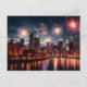 Fireworks in night city postcard