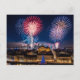 Fireworks in night city postcard