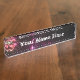 The product was just like it was in the pics, everyone at work loves it! Came on time and it was neatly packed. Bold and Clear. My name can be seen from far and it matches in color.