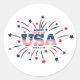 Fireworks USA Patriotic Red White Blue Classic Round Sticker