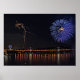 Man and nature combine to present an outstanding display over the Hudson River. July 4th fireworks streak into the sky with the Mid Hudson Bridge in the background. Taken from The Walkway Over the Hudson.