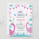First 1st Birthday Dark & Light Pink Dinosaur Invitation