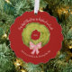 First Christmas as husband and wife customised keepsake paper ornament with photo on the back. Created from a hand drawn nostalgic watercolor wreath and bow. Original art by Leslie Larson.
