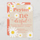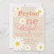 Bright white daisies adorn this cute invitation to baby's first birthday. Perfect for your precious little girl, this colourful card features scattered white daisies with coral or salmon coloured typography with a ONE-derful theme. Back of card features the same coral or salmon colour with white daisies. Personalise the name and party details. This whimsical design is available on matching birthday party items.