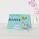Adorable Custom First Birthday Card Featuring A Large Birthday Cake And Rocking Horse With Balloons Design. Perfect Card For Boys Or Girls.