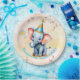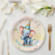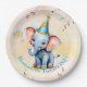 First Birthday Cute Blue Elephant Golden Floral Paper Plate
