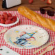 Celebrate your little one’s big day with these charming themed paper plates! Featuring an adorable baby elephant in a colourful party hat, surrounded by playful floating bubbles and whimsy orange buds on a golden peach background, these plates add joy and magic to your child’s first birthday. The phrase “Benjamina Turns ONE!” curves sweetly along the bottom—customisable for any name or age.