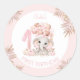 First Birthday Elephant Pink Fall Girl Classic Round Sticker