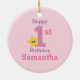 First Birthday Girl, Pink with Yellow Star Ceramic Tree Decoration