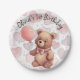 First Birthday Girl Traditional Pink Bear Paper Plate