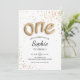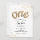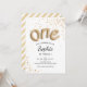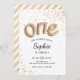 1st birthday invitation for girl or boy. White, gold design with faux glitter confetti. Features stripes and trendy balloons letters one. Perfect for an elegant first birthday party. Message me if you need further customization.