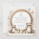 Make your child's birthday extra special with these adorable customisable invitation cards! Featuring a playful racoon theme, the design includes 2 cute raccoons peeking out from a circular wooden frame surrounded by festive elements like a birthday cake, balloons and a number 1. The light and whimsical background adds to the celebratory mood, creating the perfect setting for your little one’s big day.