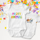 Celebrate your little one's wild adventure with our First Birthday Party Animal Safari White Baby Bodysuit. This adorable first birthday shirt is the perfect gift, featuring colourful neon "Party Animal" text on the front along with playful party animals on the back. Customise it with your child's name on the back, creating a memorable and charming outfit for their special day.