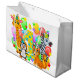 A Colourful First Birthday Large Gift Bag Designed In A Cute Animal Theme With Balloons And Stars