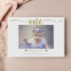 Thank all of your first birthday party guests with this elegant script photo flat thank you card. Customise text on the front/back and add a photo to create a personalised first birthday thank you card.