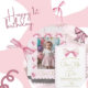 First Birthday Photo Watercolor Bow Cute Pink Invitation