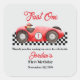 Vroom into the Celebration! Our race car-themed first birthday Thank you stickers captures the excitement of your little racer’s big day. The bold red watercolor racecar pops against a sophisticated light grey background, with the retro-styled “Fast One!” text adding a delightful touch. Party details are elegantly displayed in a classic serif font, making this stickers both playful and timeless. Perfect for parents looking to create a stylish and memorable first birthday announcement!