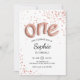 1st Birthday Invitation for girl. Feminine white, rose gold design with faux glitter confetti. Features stripes and trendy balloons letters one. Perfect for an elegant first birthday party. Message me if you need further customization.