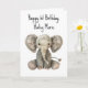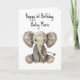 Cute plush elephant toy on a child's first birthday card. Name and sentiments can be changed. AI assisted graphic purchased with commercial use. Artwork: FreyasDigitalCrafts