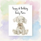 Cute watercolor dog on a child's first birthday card. Name and sentiment can be changed. AI assisted graphic purchased with commercial use. Artwork: FreyasDigitalCrafts