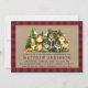 Watercolor Woodland Animals First Birthday Invitation. Baby Animals include Bear, Deer, Moose, Racoon, Bunny Rabbit, Fox and Owl with a backdrop of pine trees. Kraft Paper Style, Forest Green Pine, Red Buffalo Plaid.