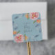 These first bloom floral baby shower envelope seals are perfect for a spring baby shower. The modern design features pink and orange watercolor flowers on a light blue background. Personalise the label with the name of the mum-to-be.
