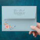 This first bloom floral baby shower invitation envelope is perfect for a spring baby shower. The modern design features pink and orange watercolor flowers on a light blue background. Personalise the envelope flap with your return address. These envelopes can also be used for a bridal shower, baby shower, or any special event.