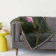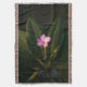 The darkly intriguing image on this Throw Blanket is an original photograph by ZoeSPEAK of a plumeria plant, with its very first flower blooming in the evening light. The pale pink petals stand out against the deep green of the large leaves. In Hawaii, the flowers are used to make leis. The plant is also called frangipani, and the blooms are in a variety of colours.