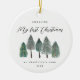 This rustic holiday ornament features "my first Christmas as aunt" typography with pretty script. Your custom names and personalized year are included. At the center are beautiful painted pine trees! A sweet holiday gift for a loved aunt. Shop this store for coordinating tshirt!