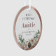 First Christmas as Auntie Personalised with Baby's Name, Birthdate, and Photo Round Acrylic Keepsake Ornament... A delicate bouquet of pink roses, pine cones, and holiday season botanicals decorates the rose gold metallic frame circling the text on front of your Christmas ornament gift for family members. On back of the ornament is the grandchild's photo also framed by metallic rose gold. The example wording on this keepsake ornament reads "First Christmas as Auntie of Bethany Westfield 05.15.2025". All example text and the placeholder photo can be easily revised with your own on the personalisation template.
