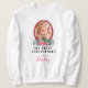 Family first christmas sweatshirt featuring a photo of your child with a two tone red border, watercolor xmas trees, a red pick up truck, and the cute saying "my first christmas as daddy".