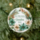Celebrate your first Christmas as a Grandma with our beautiful First Christmas as Grandma ornament featuring a lovely watercolor style white and green poinsettias and evergreen wreath. Edit the text to suit your needs, change to Grammy, grandmother, nana, whatever you need. The date is customisable as well. It’s the perfect way to commemorate this special milestone in your life or a loved ones life. Add a touch of holiday cheer to your tree and share the joy of lasting memories with this unique sentimental ornament. Edit text from the product page or to change font styles or colours, use the design tool.
