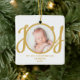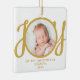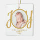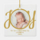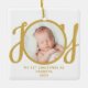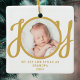 This keepsake, "First Christmas As Grandpa" photo ornament, is decorated with the word 'JOY' in stylish gold script typography on a white background. Easily customisable.