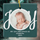This keepsake, "First Christmas As Grandpa" photo ornament, is decorated with the word 'JOY' in stylish script typography on a green background. Easily customisable.