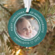 This Christmas ornament is double sided. Personalise it with two photos. One on the front and a different one on the back. This template works best with landscape format photos with the baby in the centre of the photo. Personalise the text with the year and baby's name.