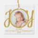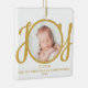 This keepsake First Christmas As Grandparents photo ornament is decorated with the word JOY in stylish gold script typography on a white background. Easily customisable.