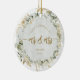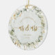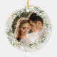 Cherish your first memories together with this lovely Christmas ornament. The elegant design features a eucalyptus wreath with gold accents. The back features your favourite photo. The front includes your name and wedding date. This ornament will be a keepsake to treasure forever.