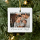 Celebrate the joy of parenthood with our "First Christmas as Mum and Dad" Ceramic Ornament. This beautifully crafted ornament features a heartfelt message in elegant green script on the front, declaring "Our First Christmas as Mum and Dad" along with the year. You can add a cherished photo of your family to the front. On the back, there's room for another special photo to capture this momentous occasion. It's the perfect keepsake to commemorate your first Christmas as parents. Cherish your first Christmas as Mum and Dad with our special Ceramic Ornament. Customise it with your family's photo and the year. Create lasting memories and order yours today.