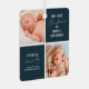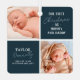 Modern new baby christmas ornament featuring 2 photos of your newborn, classic blue squares, with the saying "our first christmas as mummy & daddy", the babys name, and birth stats.