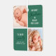 Modern new baby christmas ornament featuring 2 photos of your newborn, stylish green squares, with the saying "our first christmas as mummy & daddy", the babys name, and birth stats.
