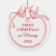 Celebrate a milestone you’ll never forget—your first Christmas as Mum. This elegant round ceramic ornament features a hand-drawn red bow and heart framing the message “First Christmas as Mummy.” Make this Christmas the first of many treasured memories.