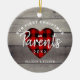 First Christmas As Parents Rustic Personalised Ornament makes a perfect keepsake gift idea for new parents. Both sides of the ornament are designed with a rustic faux wood background and a buffalo plaid red and black heart on the centre. The text is modern hand lettering script mixed with simple print. "Our first Christmas as parents" is followed by custom year and names.
