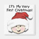 An adorable Asian baby dressed in a red and white Santa cap and kid style text that reads 'It's My Very First Christmas!' is featured on our holiday bag available in various colours and styles!
