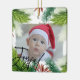 Modern First Christmas Photo ornament. Design features single photo, Christmas greenery, Joyful script on the front. Personalise further with baby's name, birth date and birth stats on the back.