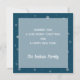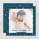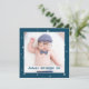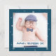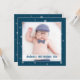 This Christmas greeting card is fully customisable with the photo of your newborn baby boy and your own text. The background is blue, with white snowflakes.