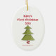 Baby's first Christmas keepsake. Personalise this with baby name. Created with an option to edit with your own text (upper right on this page). MyBabyGiggles' Zazzle shop specialises in creating family-friendly gifts including Christian greeting cards and gifts for all ages.